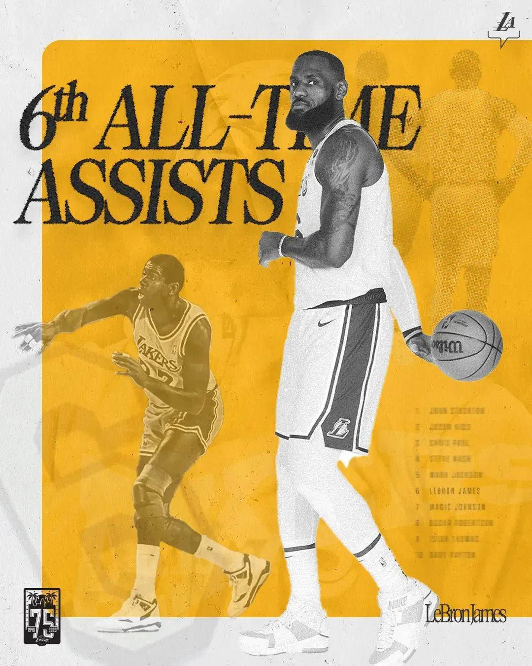 助攻:10144次,历史第6,今天超越的魔术师约翰逊的10141次,距离历史第5的马克杰克逊差90次