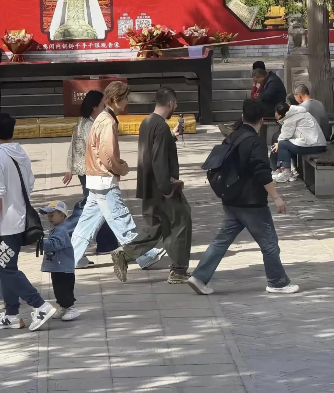 此次鹿晗的造型堪称“低调的时尚范本”——棕色皮衣自带复古质感,内搭白T恤简约清爽,牛仔裤与运动鞋的组合进一步强化了日常感。助理手持运动相机跟拍,疑似为新vlog取材,粉丝猜测其或将通过镜头分享古寺文化之旅。对比此前国贸被偶遇时的“瘦10斤小脸”争议,这次的路透无疑展现了更健康自然的形象,被网友调侃“颜值稳定得像开了防腐剂”。