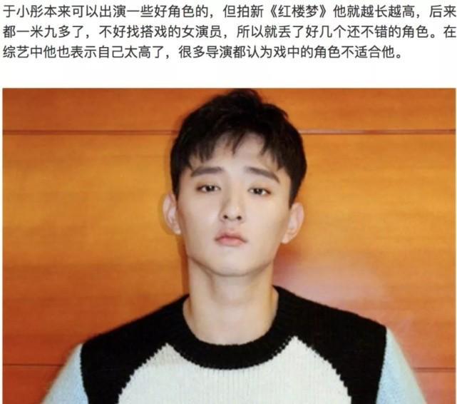 当然,也有受身高太高影响的明星,于小彤就一直觉得193cm的身高是自己的一大缺点,这个身高还让他丢掉了很多角色,因为导演认为形象不符。