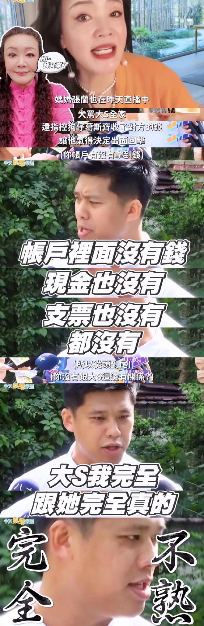 据悉,此前张兰曾在直播中说葛思齐收大 S 钱。