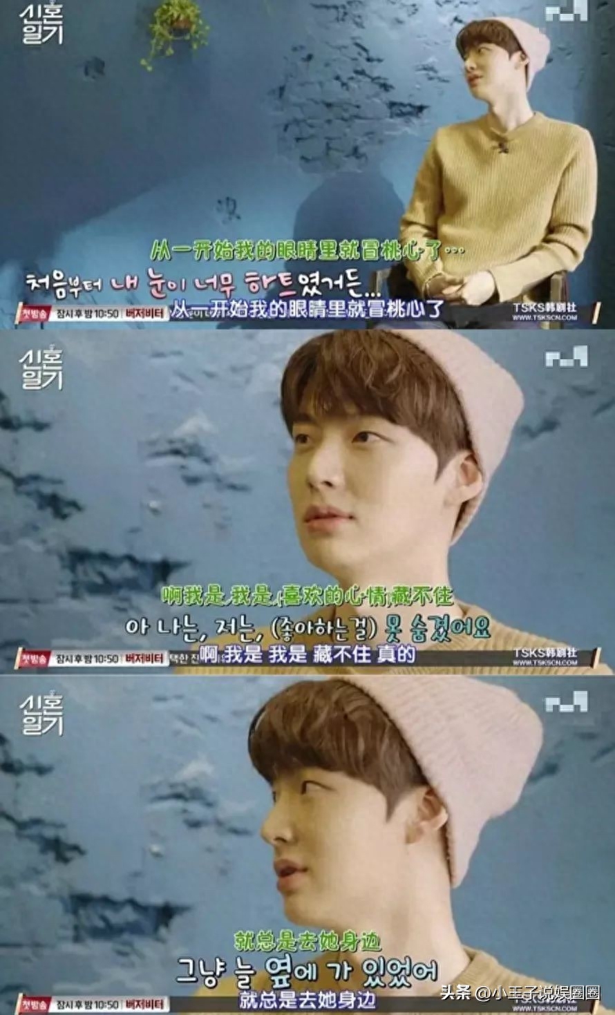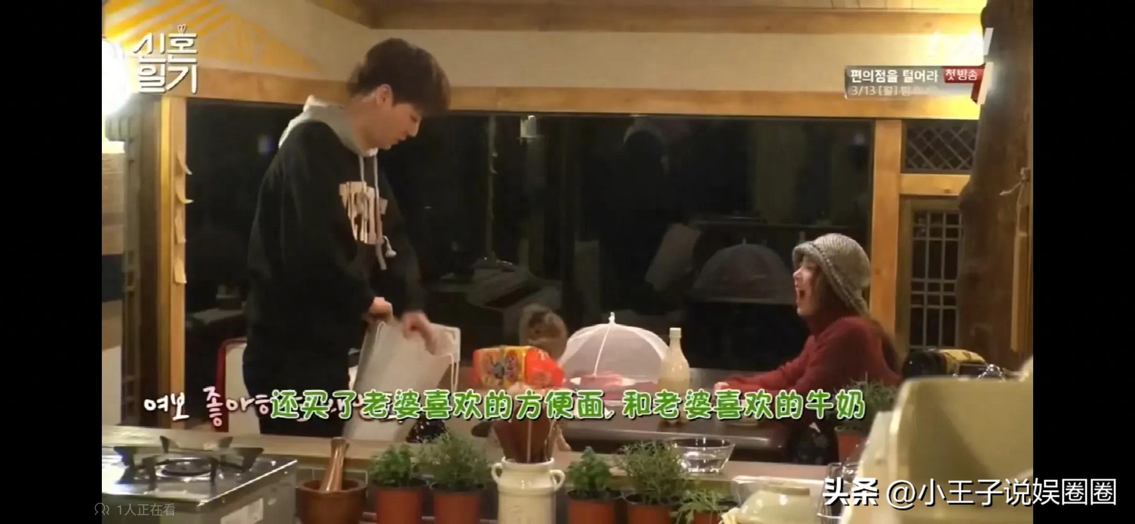 《新婚日记》里有一集,安宰贤要外出工作,具惠善独自一人和宠物们在家,一直到半夜还在客厅等着安宰贤回来,困得瞌睡连天。而安宰贤下车后以快到摄像机差点都没拍到的速度,飞奔到小屋,一眼就看到了具惠善亲手织的毛线餐桌垫,还炫耀给老婆买了最爱的蒸包、方便面和牛奶,像个大金毛一样对具惠善亲了又亲。当时弹幕里都说甜死了。