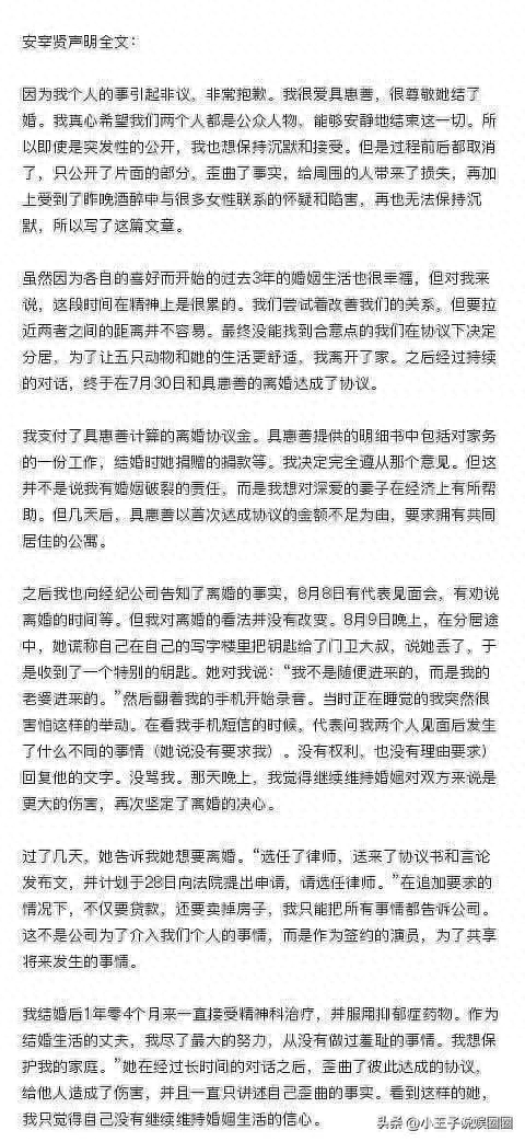 2025年8月18日,结婚刚满3周年的具惠善,在ins上突然发布消息,称老公安宰贤要离婚,而自己不同意,马上安宰贤的经纪公司将会发出一系列报道,而她要抢在这之前发声,保护自己的家庭。