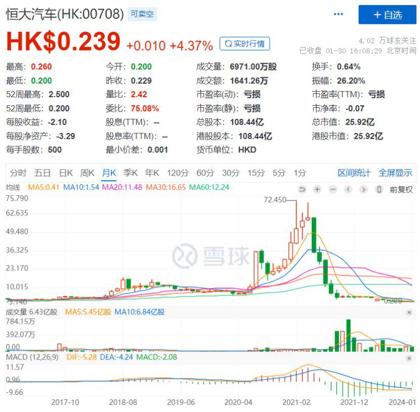 眼下,恒大持有的恒大物业和恒大汽车市值不到 30 亿人民币,即便不考虑股价暴跌和折现损失,这 30 亿人民币也不够偿还优先债权。也就是说,恒大境外的债主们,不管是有担保还是无担保,都可能一分钱也拿不到。