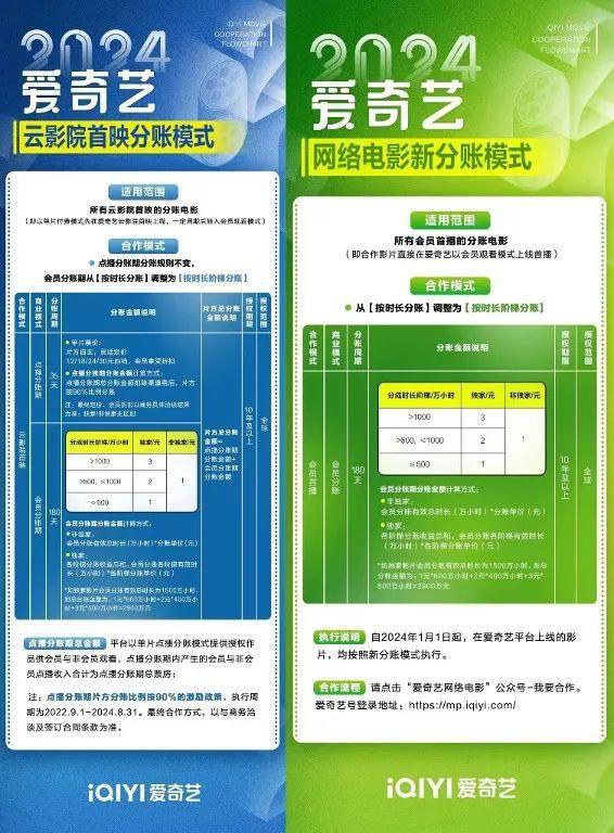 以爱奇艺最新分账模式为例,会员观看时长超 1000 万、超 600 万和低于 600 万小时,对应万小时阶梯分账单价分别为 3 元、2 元和 1 元,最终总分账票房为各阶梯收益的总和。