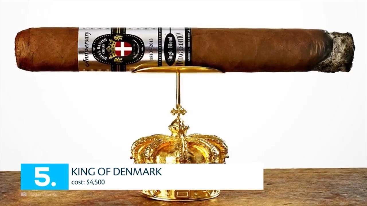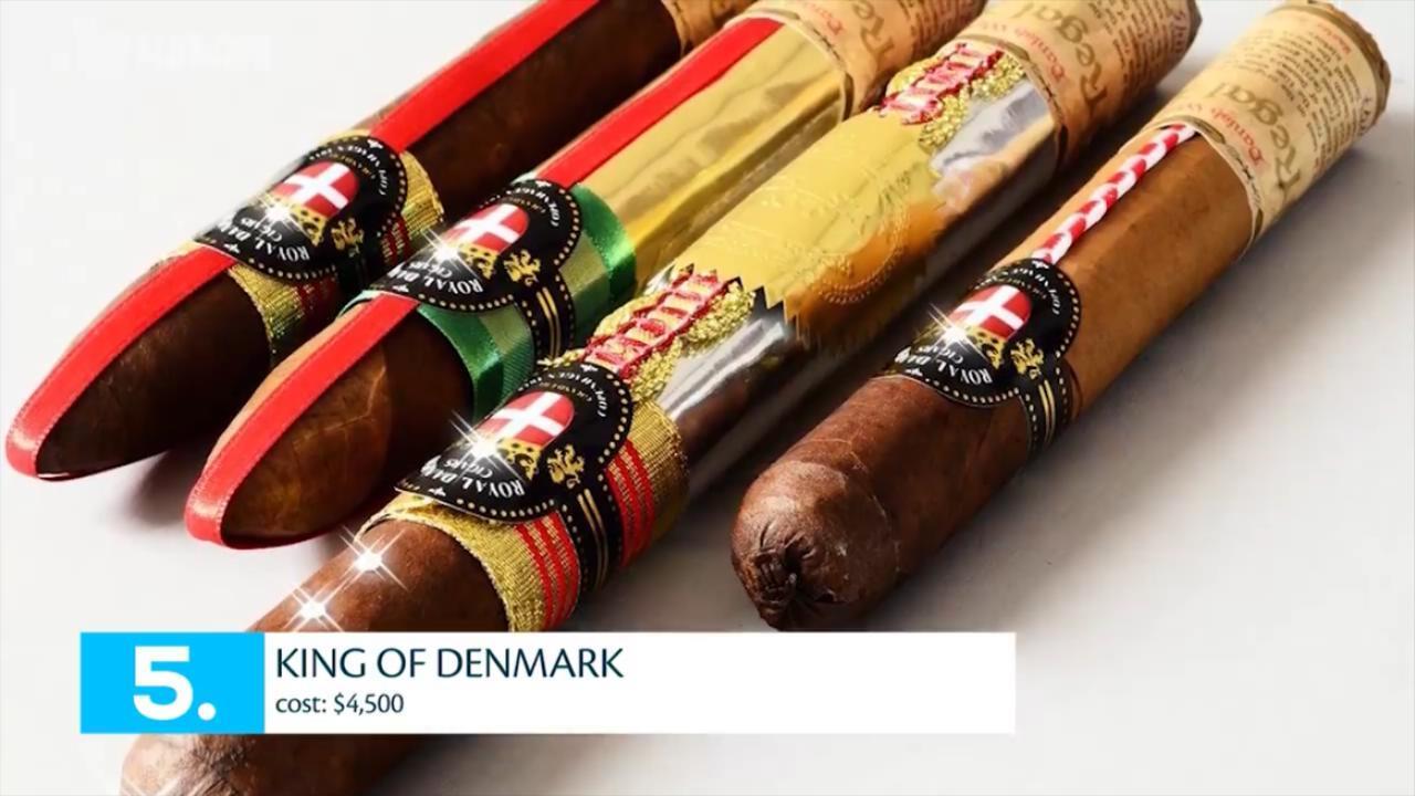 第五名:丹麦国王雪茄(King of Denmark)。由丹麦皇家雪茄公司生产,一根售价4500美元,买家可以印上自己的名字,并且用金色包装纸、和几种贵金属包装。