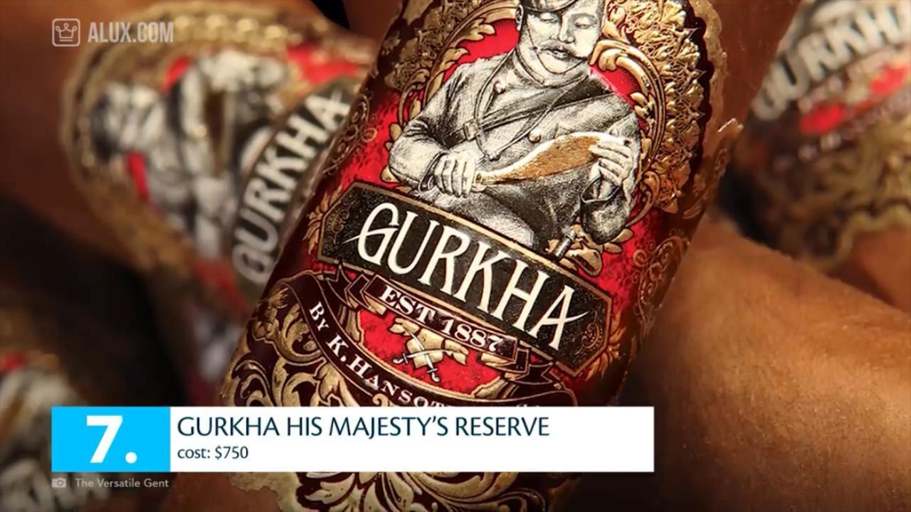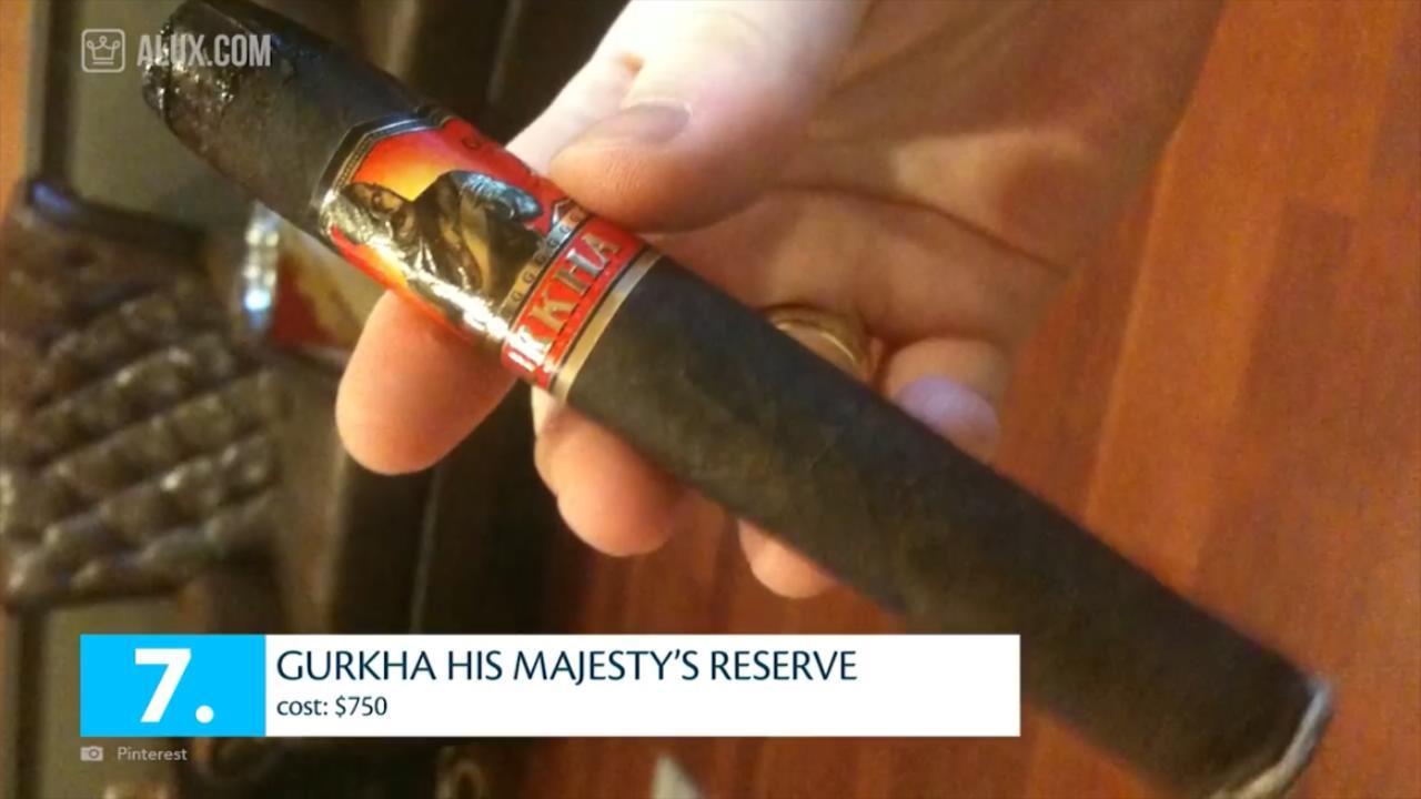第七名:廓尔喀. 国王陛下(Gurkha His Majesty's Reserve). 廓尔喀被称之为雪茄中的劳斯莱斯,这款雪茄一盒20支,售价1.5万美元,平均每支750美元,每年只生产100盒,每支雪茄在出售之前都要经过12年的陈化,漫长的等待时间,是价格昂贵的原因。