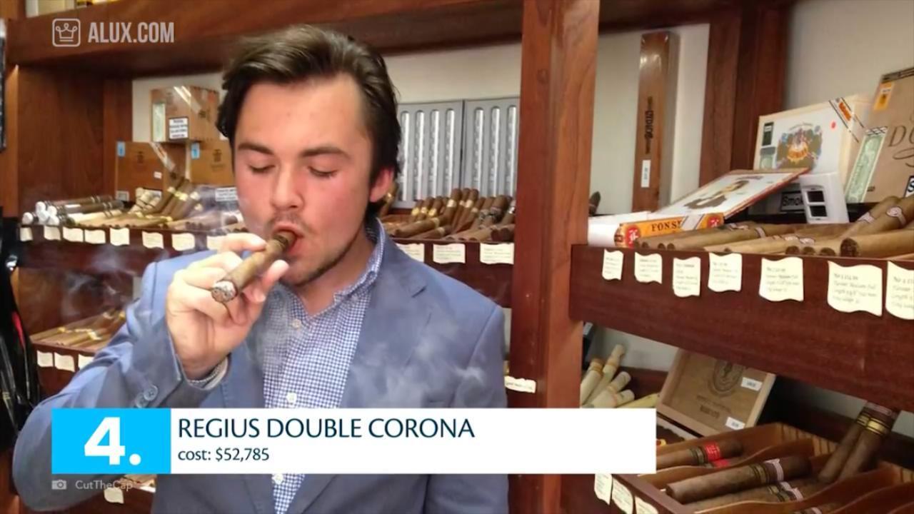 第四名:来自英国的雪茄公司 (Regius Double Corona ),一根售价5.2万美元,据说这种雪茄的味道有点甜。如果你买了这么一支雪茄,你前往英国可以坐头等舱,可以去参观这家英国雪茄公司的设施,还可以订制自己的私人口味的雪茄,与其说是购买了一支雪茄,不如说是购买了一种雪茄服务,英国公司的销售策略真是一绝。