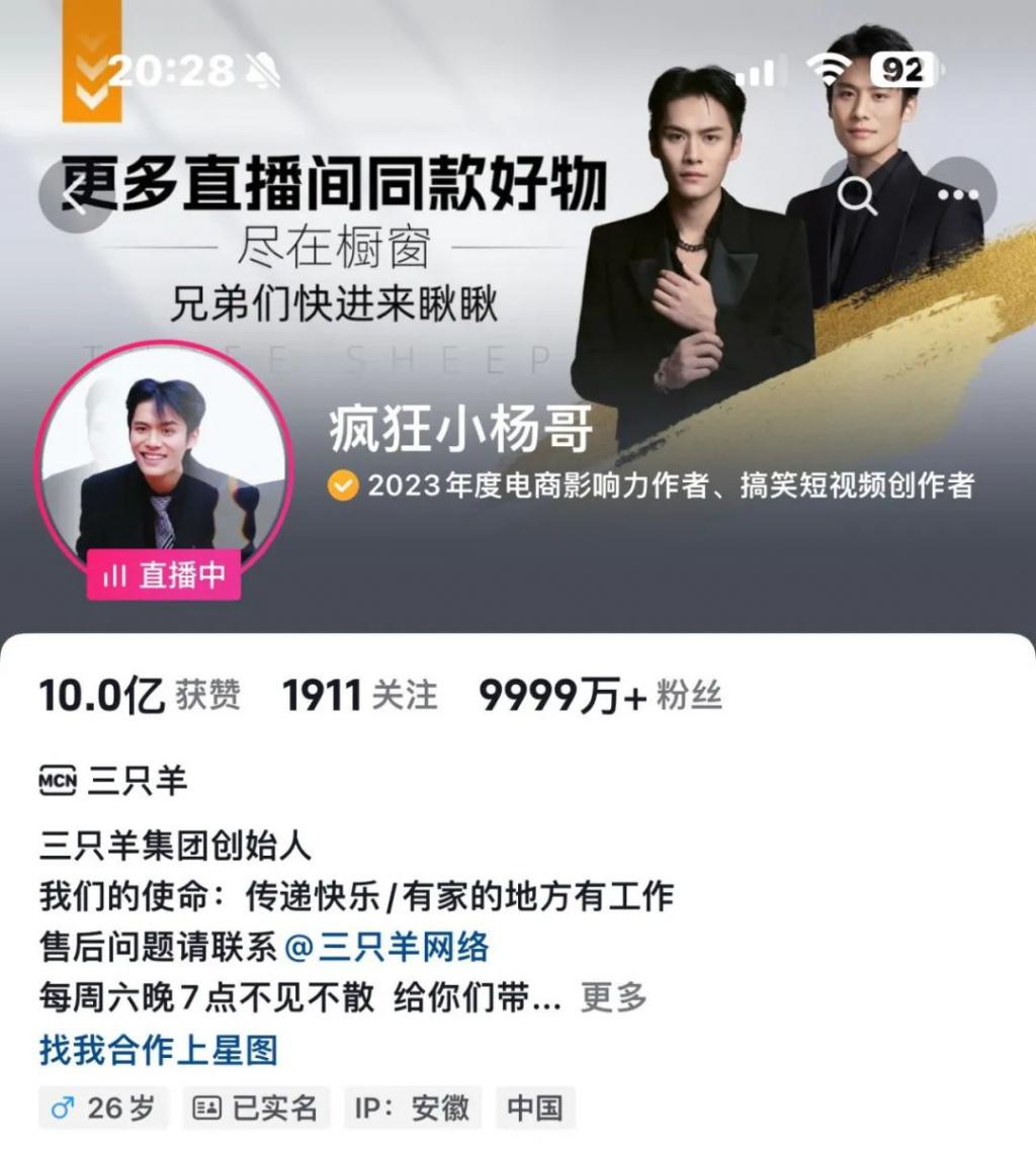 小杨臻选,很难不怀疑在蹭一波东方甄选的热度。不过,目前," 疯狂小杨哥 " 在抖音的粉丝已达到显示上限 "9999 万 +",累计获赞 10 亿。