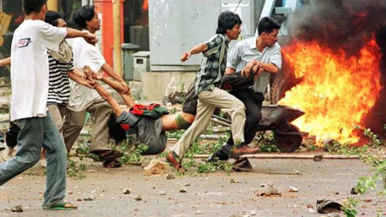 印尼华人是这场血腥暴乱的主要目标,而印尼军方无视暴民们对华人的抢劫和对华人妇女的强奸。导致超过1,000人死于这场暴乱中,大部分华人被烧死在商业区和商场,也有一部分被当场打死或遭到枪杀。暴徒穿着军靴被军用卡车运送到华人区,他们高呼“宰了中国人,烧死他们,这些中国狗”,然后开始抢劫商店和市场,随后,他们开始把妇女集中起来进行集体轮奸,印尼警察到场之后,并没有阻止暴徒的行动。华裔妇女和10岁的女孩在中国社区被有组织的抢劫者强奸。一些受害者在父母面前被轮奸,然后纵火死亡。一些袭击者说,‘你一定是红色的,因为你是中国人,不是穆斯林。’一位妇女告诉《纽约时报》,并补充说许多妇女事后自杀。1998年5月,在两天的种族混乱中,暴徒杀害了1000人,强奸了87名妇女,其中大多数是华裔。据报道,由军队暴徒领导的强奸小组在印度尼西亚首都雅加达的街道上游荡,其他人蜷缩在家中。鲁米纳回忆起那天下午,一群暴徒洗劫了她的小美发沙龙,砸碎了窗户,摧毁了她的生意和她对祖国正义的信心。娇小的鲁米纳只有一个名字,那天失去的比她的商店还多。她的发育障碍儿子在附近一家购物中心被抢劫者放火身亡。大卫·利霍德在《时代》杂志上写道:“麻烦始于一个谣言......有消息说,一名马来人在一次轻微的交通事故中被一名华裔杀害。”几个小时内,武装人员的暴徒在街道上横冲直撞,放火烧了大部分中国人拥有的房屋和商店,到日出时...... 400多座建筑被损坏或摧毁,中国人逃往邻近的城镇。20多名愤怒的年轻人开始向商店里扔石头。他们挥舞着刀子、镰刀和铁棒,冲进里面,打翻了大米、糖、大豆和食用油的展示。他们抢了现金抽屉,偷了两吨大米,放火......大喊“杀了中国人”。店主在街上被愤怒的暴徒追着,在一家非华裔印尼朋友开的商店里找到了安全。