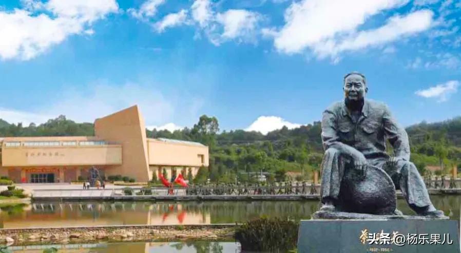 高两米,重近一吨的叶帅铜像,身着中山装,右手拿着大圆草帽,坐落在石头上与群众促膝谈心的形态,栩栩如生地表现了叶帅艰苦朴素、深入基层、平易近人,始终与人民群众打成一片的优良作风。
