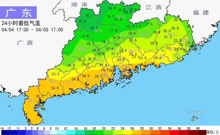 尽管多地早前已 " 官宣入夏 ",但清明假期 " 暴雨纷纷 " 的天气多少为广东带来一些 " 春天的感觉 "。广东省气象部门统计,5 日受强降水影响,珠三角西部市县当天最高气温较 4 日下降了 8~11 ℃,粤北市县下降了 4~8 ℃,广东其余市县下降了 1~3 ℃或大致持平;韶关、清远、肇庆、云浮北部市县当天最低气温较 4 日下降了 1~6 ℃,广东其余大部分市县较 4 日大致持平或略有上升,其中清远阳山录得全省最低气温 15.1 ℃。在广州,5 日 16 时各区气温相比 4 日 16 时下降 5.3~9.1 ℃。