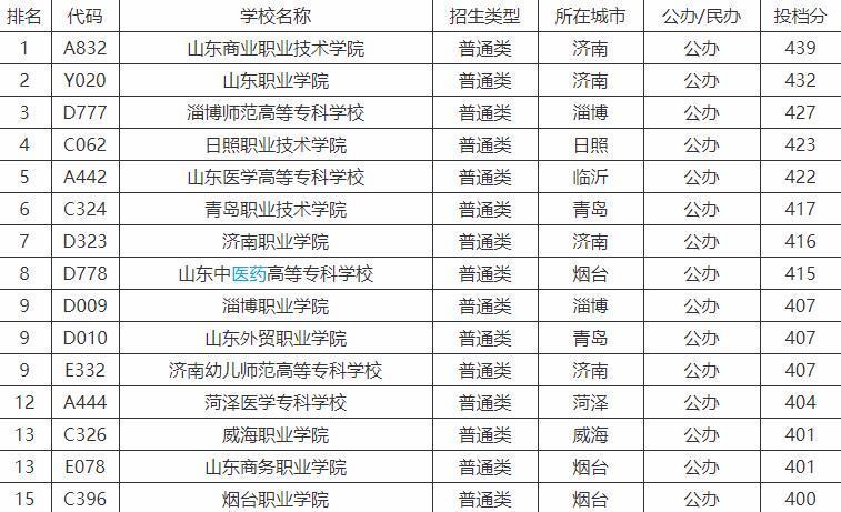 山东商业职业技术学院是国家示范性高职院校、国家建设类技能型紧缺人才培养试点高校,是由山东省商业职工大学和山东省商业学校在1999年合并而成,在山东的高职院校中排名第一,在19年的投档分数是439分。