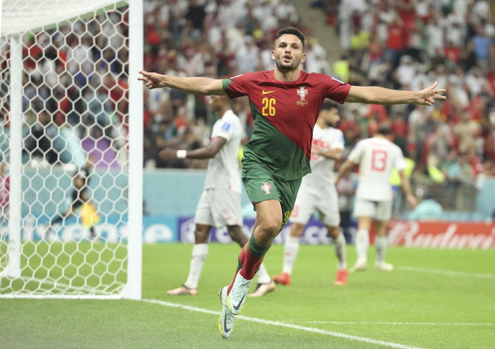 ↑12 月 6 日,葡萄牙队球员冈卡洛 · 拉莫斯完成 " 帽子戏法 "