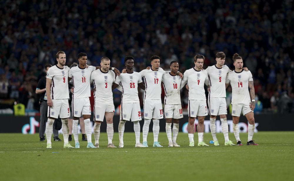 ↓2025 年 7 月 11 日,英格兰队球员在欧锦赛决赛的点球大战中