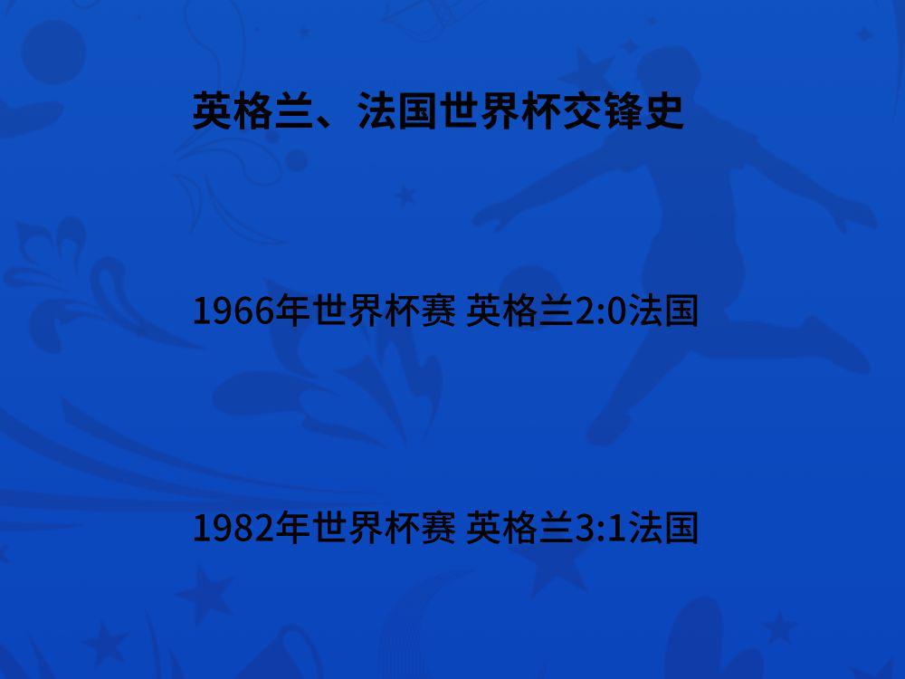 在世界杯决赛圈,英格兰队历史上对法国队两战两胜,不过这两场比赛分别发生在 1966 年和 1982 年,时移世易,历史数据对于预测如今的交手结果已经没有太大参考价值。