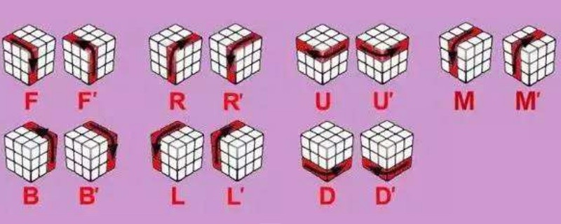 首先,U代表顶层;D代表底层;F代表前面;B代表后面;R代表右边;L代表左边;M代表中间层。转动魔方的口诀用字母表示,比如,U代表顶层顺时针转动90°,U'代表顶层逆时针转动90°,U2代表顺时针转动180°,U2'代表逆时针转动180°,以此类推。