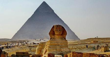 金字塔在埃及和美洲均有分布,现在在尼罗河的下游,分布着大小八十多个金字塔,其中最高的是胡夫金字塔,还矗立着一座象征国王权利和尊严的狮身人面像,是世界七大奇迹之一,