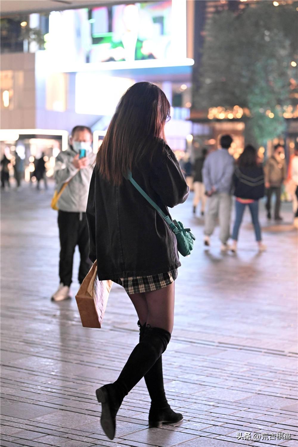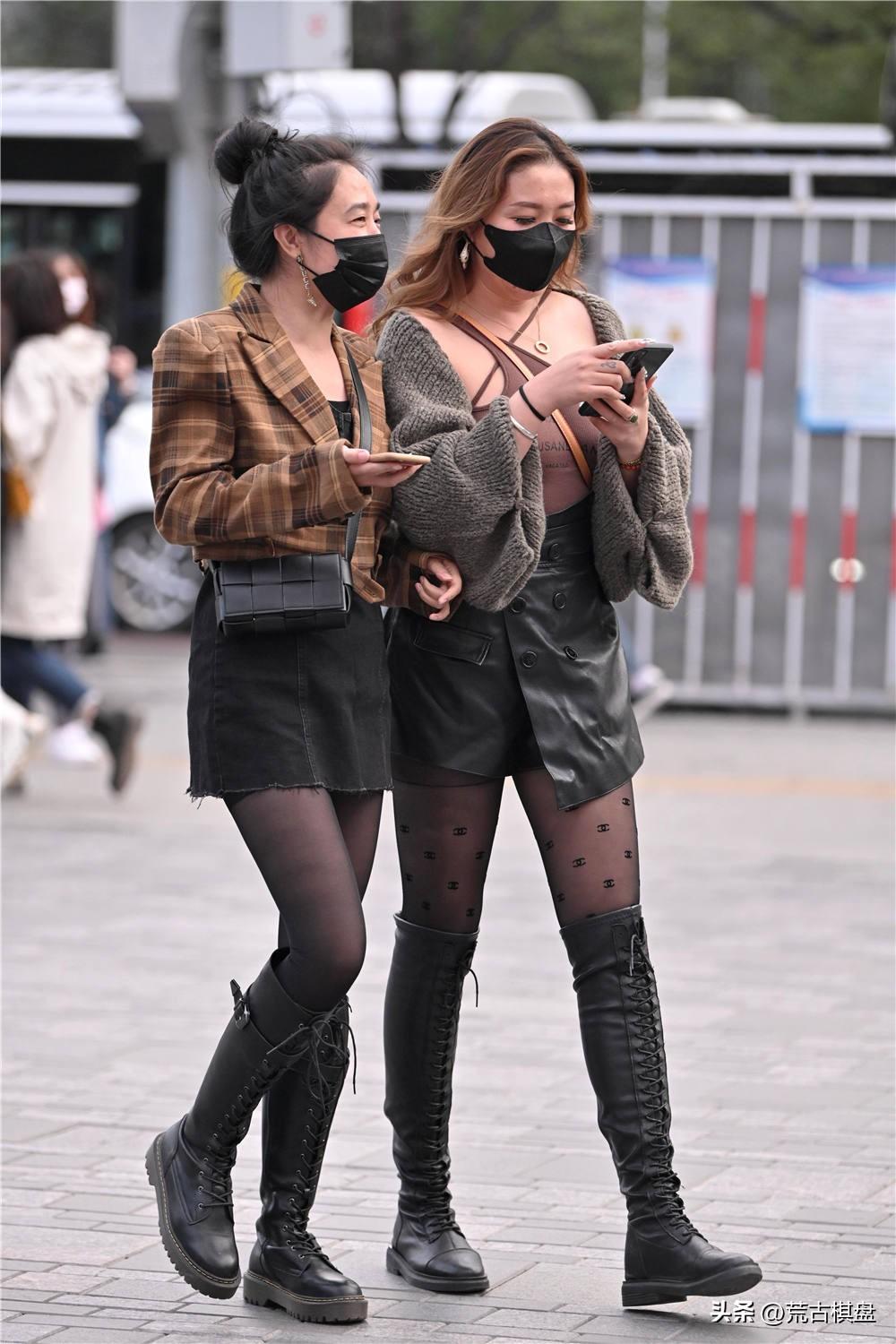 现在年轻的姑娘,更喜欢舒适的搭配,以前黑色丝袜搭配靴子,高跟款式居多,现在的美女,一般都选择平底风格,稍微有点马丁靴的效果,穿着很舒服,也很简单。