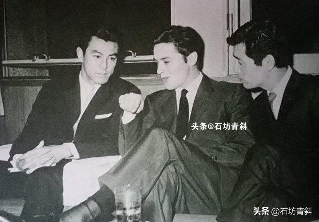 1963年日本,左起:田宫二郎、阿兰·德龙Alain Delon、仲代达矢