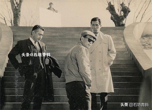 电影《椿三十郎》(1962片场,左起:三船敏郎、黑泽明、仲代达矢
