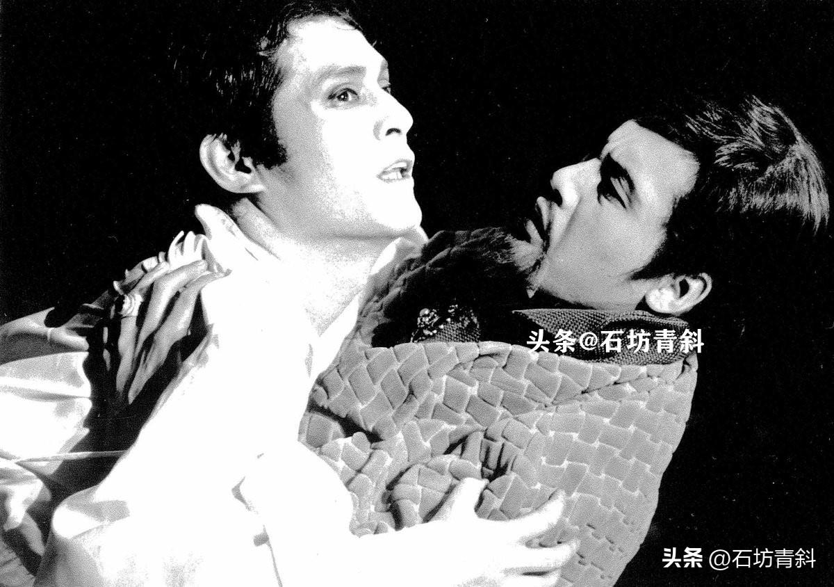 1964年仲代达矢(左)和平干二朗在舞台上主演《哈姆雷特》