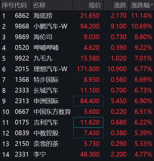 港股市场上,餐饮板块同样表现给力,海底捞大涨 11%,呷哺呷哺、海伦斯、九毛九、奈雪的茶等均有较好表现。