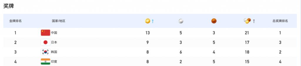 截至 7 月 31 日 12 时奖牌和排名