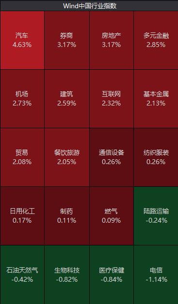 在 " 牛市旗手 " 的带动下,上午房地产、汽车、食品饮料、建筑建材等板块均有较好表现。
