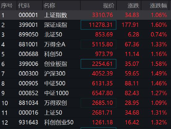 市场方面,7 月的最后一个交易日,A 股市场整体高开:上证指数涨 0.34%,深证成指涨 0.53%,创业板指涨 0.62%。开盘后市场持续发力,上证指数一举突破 3300 点。截至发稿,市场各指数全线飘红,三大指数均涨超 1%。