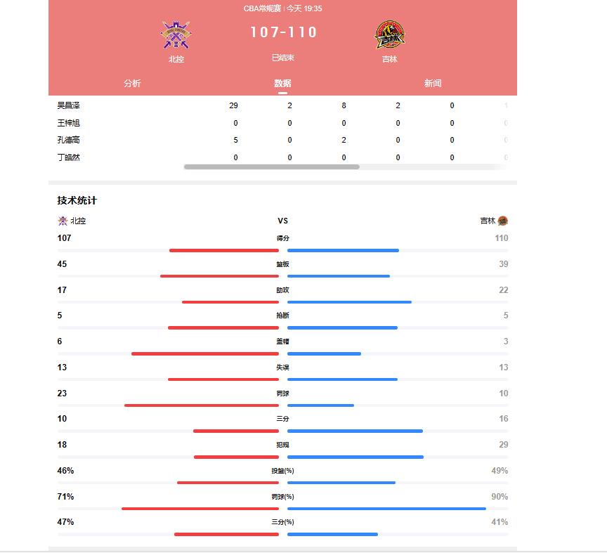 这波三连主的最后一场,北控男篮以107比110告负,很遗憾没能收下全胜。钟诚和吴昌泽夹击上半场快30分的里勒-钟诚和皮特森挡拆有效下顺-钟诚轮转大延误逼失误+乐福式上球…这场比赛,北控输就输在判罚上了,全场给了32个罚球,才罚中了23个,这活儿简直太累了;反观吉林,全场总共才11个罚球,罚中了10个,这活儿太轻松了!人家北控仅第四节,就有11个罚球,而吉林是0。