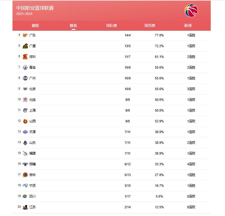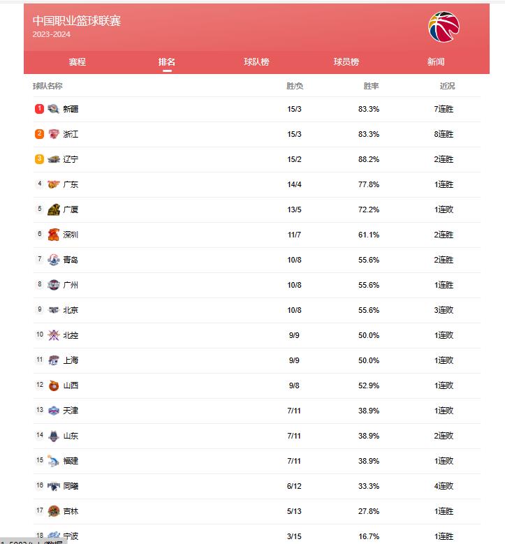 CBA18日战报?CBA最新积分榜疆浙辽居前三?广东广厦男篮进前五?