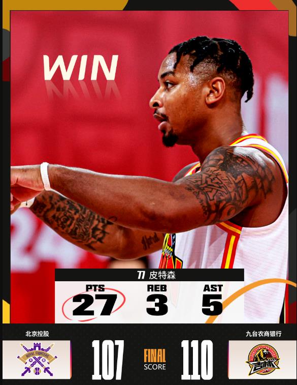 CBA联赛第十八轮常规赛,吉林九台农商银行东北虎坐客国家体育馆,以110:107战胜了北京控股男篮。看似是又一次在关键分上犯了错,实际上在上半场领先11分的情况下,第3节被吉林队追回。吉林队小外援皮特森末节14分3助攻,代怀博最后两记空位三分都相当“致命”。