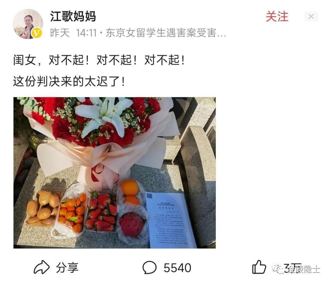 江歌母亲江秋莲女士老泪纵横,人家在第一时间去告慰自己的女儿,正义虽迟但到。