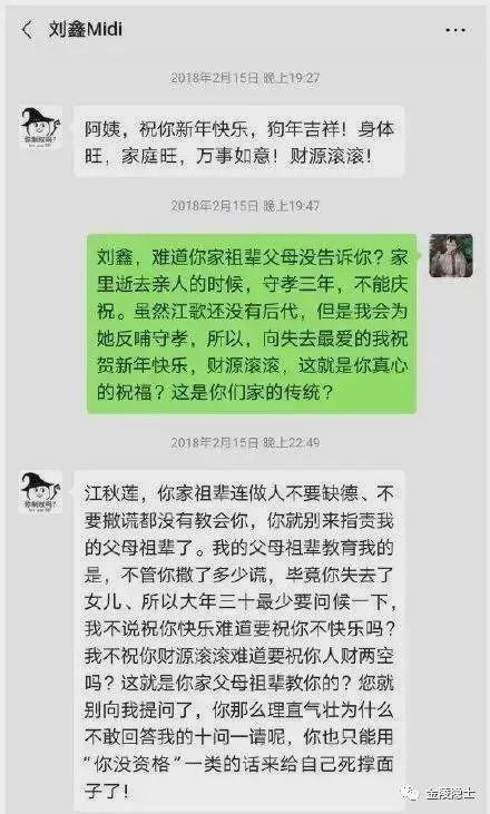 人世间最痛苦的事莫过于,白发人送黑发人。相较于意外,江歌用瘦弱的身躯去保护了刘鑫(现在改名为刘某曦),反而被刘鑫恩将仇报。人家痛失爱女,刘鑫却在过年,这个原本团圆的节日去刺激江歌的母亲。这是种什么行为?