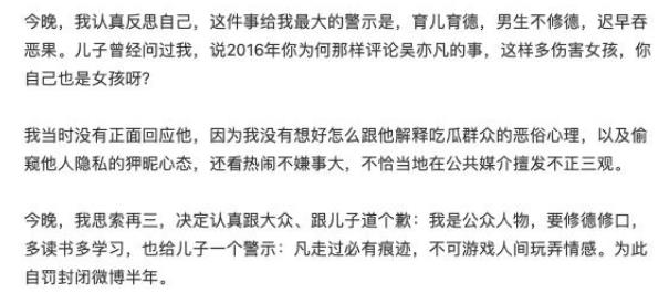 事后,六六公开道歉,她表示之前是以吃瓜的心态评论,事后才觉得自己言论过于激进,无形间伤害到很多人,六六决定关闭微博半年。