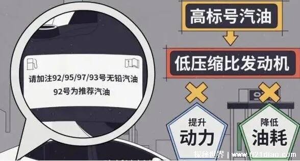 每辆车都是根据发动机压缩比来选择油品的,在油箱盖里边有提示油品选择,如果盲目的降低油品,会导致爆震,燃烧不正常,造成冲击爆炸,而且积碳问题也会越来越严重,甚至可能造成发动机损坏,所以不建议盲目更换汽油,但一般油箱盖上会推荐两种油品,选择低一档的即可。