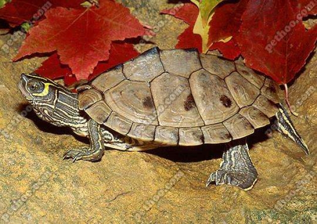 又称地图龟。饲养温度为22-30℃,饲料为螺、小虾、小鱼、鸡肉、动物肝。一般甲长为15-25cm。