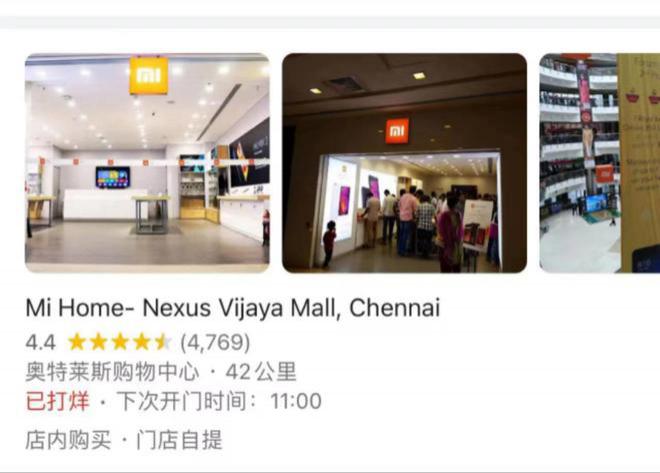 印度金奈的小米门店 图源:地图 App 截图