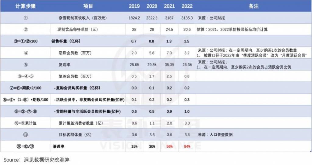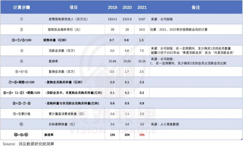 备注:以 3.6 亿的核心客群为新客天花板,累计首购杯量为已经获取的新客人数,粗略估算喜茶们在消费者中的渗透率。