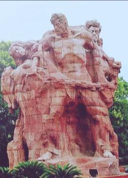 烈士群雕由438块红色花岗石组成,以展现革命者“宁死不屈、视死如归、浩气长存”的英雄本色。