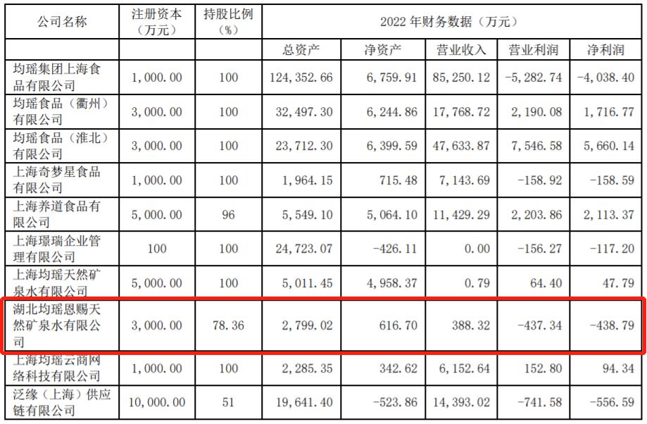 财报显示,2025 年上海均瑶天然矿泉水公司和湖北均瑶恩赐公司分别亏损 89 万元和 333 万元;2025 年上半年,上海均瑶扭亏为盈,净利润 22.65 万元,湖北均瑶恩赐亏损 246.67 万元。