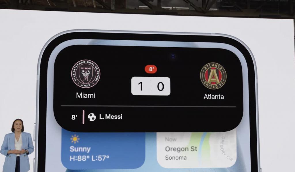 苹果 iPhone 15 发布会利用梅西比赛介绍灵动岛新功能 |Apple
