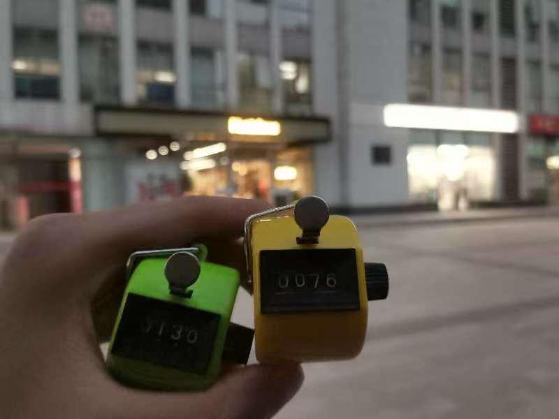 记者在好特卖万达 CBD 店外掐表计算人流量 图片来源:实习生 向思清 摄
