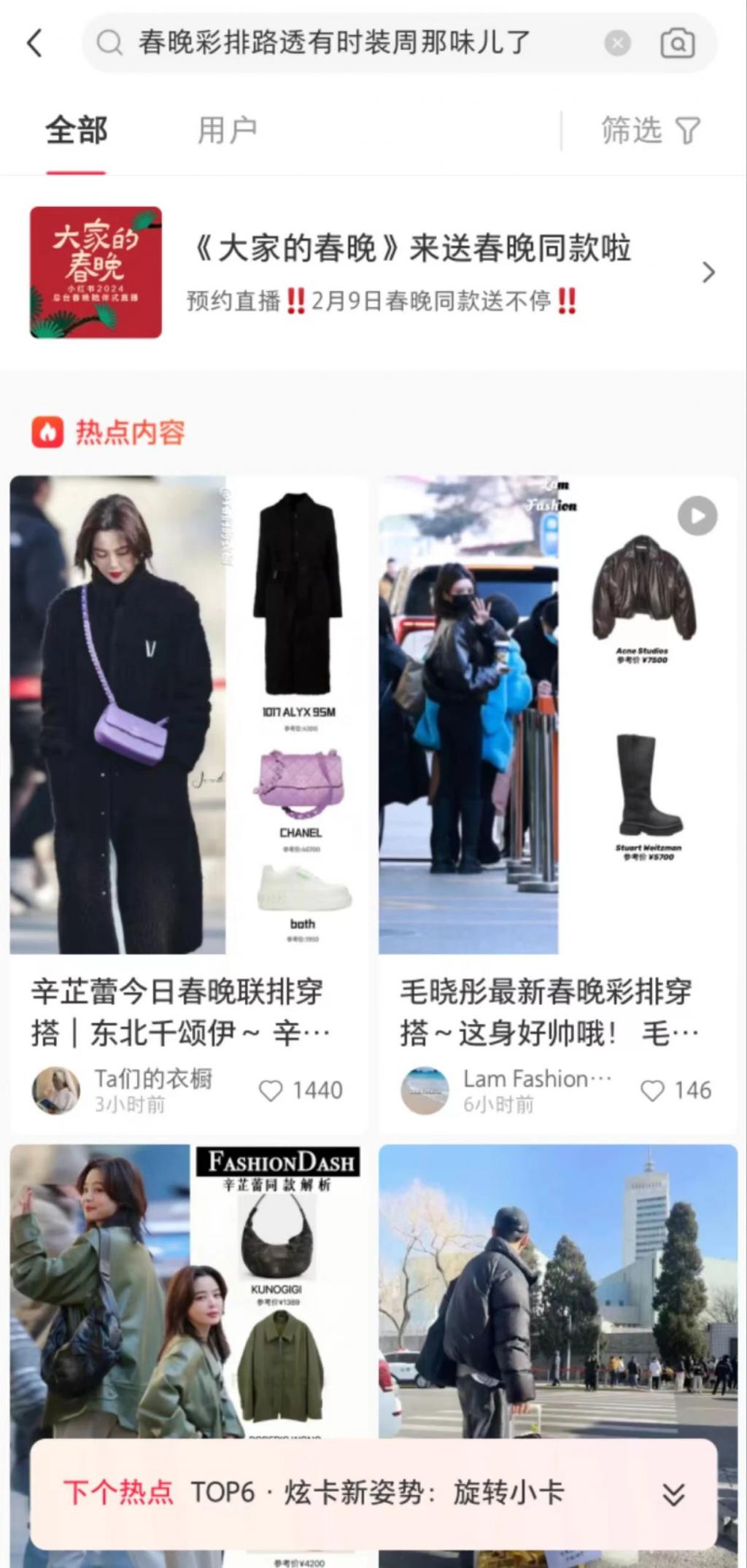 小红书在电商领域高歌猛进一年后,自然不愿意错过这个机会。1 月 28 日晚,小红书热搜就开始为带货预热,不少博主自发扒出前来彩排时的明星同款,已经有不少用户在评论区求链接。