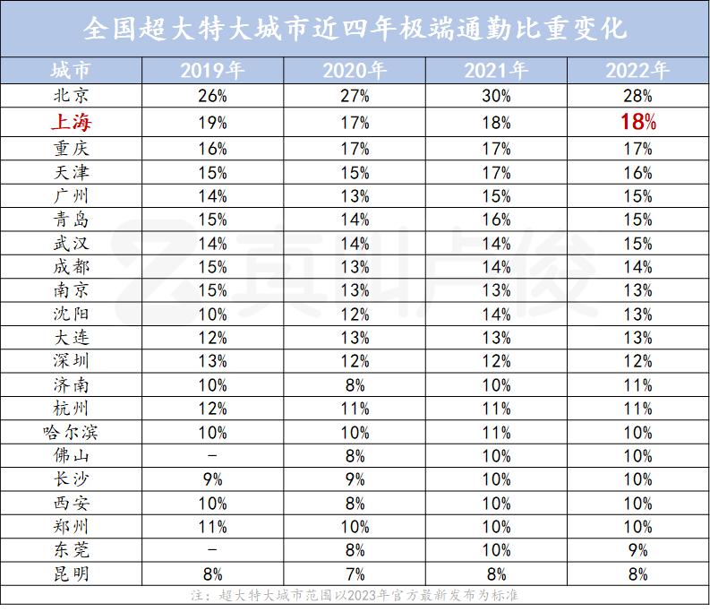 尤其在上海,我查了下这两年的极端通勤比重,都达到了18%