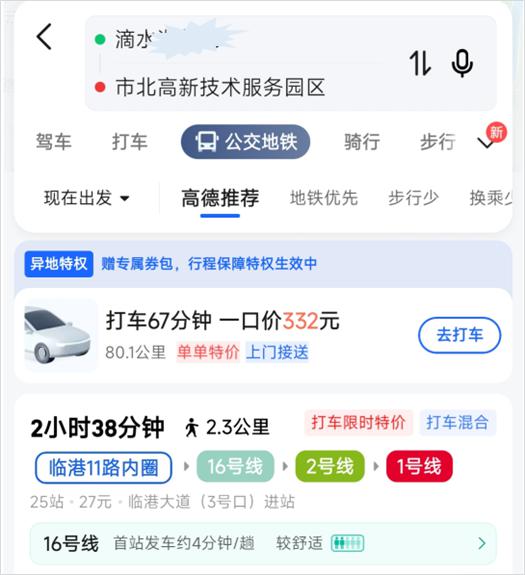 能选择的只有 16 号线普通版,全程 12 站,用时 1 个小时 10 分钟左右
