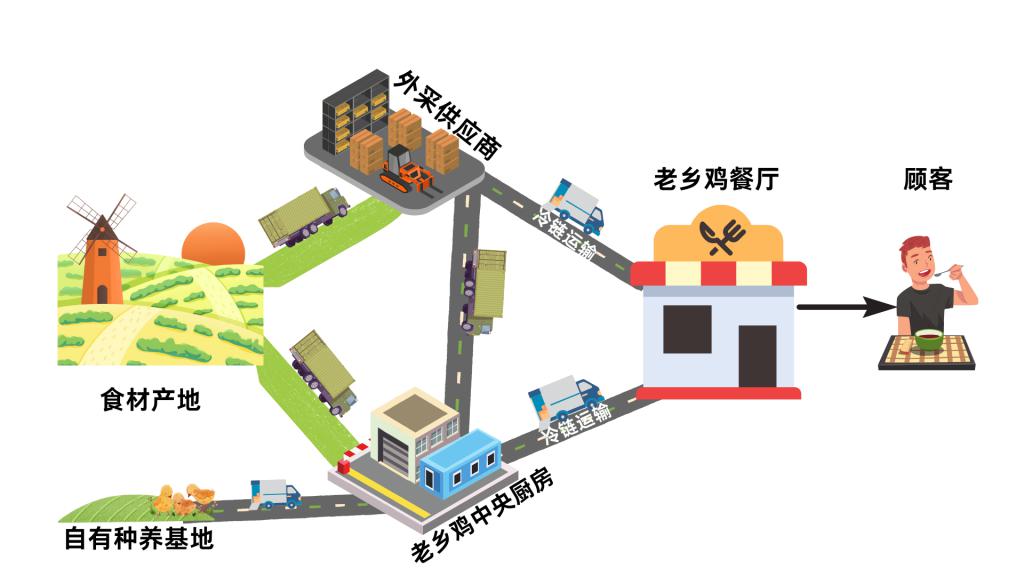 为此,老乡鸡在后端管理和全产业链生态建设上,下足了功夫。据公开信息显示,老乡鸡已经成功构建了 " 母鸡养殖 + 食品加工 + 冷链配送 + 连锁经营 " 的一体化全产业链,实现了从出品质量 " 从农耕到餐桌 " 的全过程掌控。