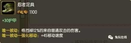 忍者足具,俗称布甲鞋。基础护甲+30,并且格挡12%来自普通攻击的伤害。恰好Bang在赛后捧了一波布甲鞋,于是小编就偷个懒,用Bang的原话来介绍一下布甲鞋: