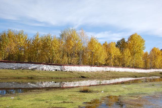 穿行在贡德林草原上凹凸不平的羊肠小道上,越野车东摇西摆颠簸不停,车后扬起一阵浓浓的红尘……车外的风景却是令人震撼:一望无际的茫茫草原,泛黄的牧草与棕红色的土地浑然一体,点缀其间的一丛一丛红色的灌木,还有不经意间突然出现在眼前的九曲十八弯的淙淙小河……在暖暖的阳光下,一群群黑色、白色的牦牛在草原上悠闲地吃草,偶而遇到一两个藏人骑着摩托车接上学的孩子回家,孩子们纯净、天真无邪的笑容令人难忘……天地合一的广阔草原与蓝天白云让人心旷神怡。
