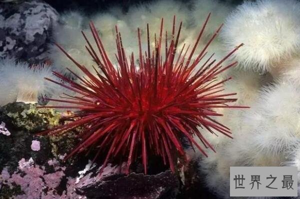 红海胆是一种刺状无脊椎动物,它们一般生活在沿海浅水域,形体较小,是地球上寿命最长的动物之一,通常能够存活100年,有些能够存活200年甚至更长,而且毫无衰老迹象。